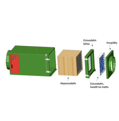 - Kapasiteetti 1000 m3/h (HEPA-suodattimella)