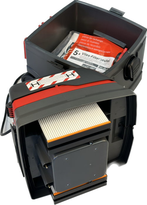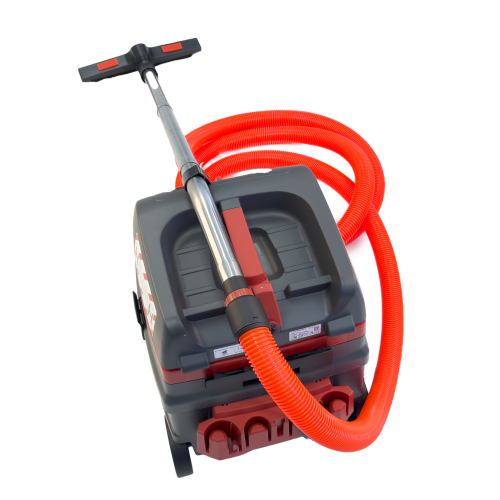 SAFE PLUS rakennusimuri on nimensä mukaisesti turvallinen H-luokan rakennusimuri rakentamiseen, saneeraukseen sekä teollisuuteen. Saksalaisen imurin suodattimien luokitus on HEPA H14. Imurin oranssi imuletku erottuu hyvin työmaalla.