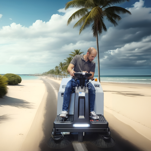 Edullinen lakaisukone rakennustyömaan ylläpitosiivoukseen