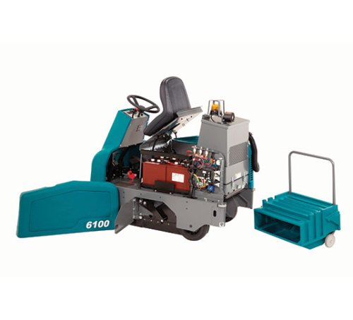 Tennant T6100 on käyttäjäystävällinen istuen ohjattava lakaisukone, sillä harjan tai suodattimen vaihdossa ei tarvita minkäänlaisia työkaluja.