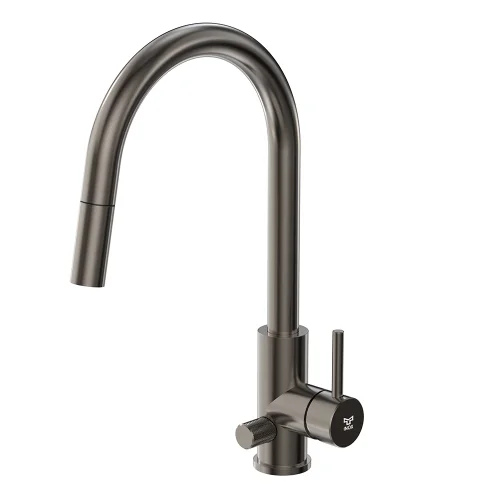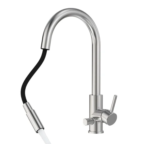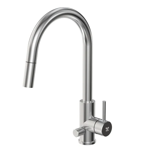 Hanan runko on valmistettu 100 % AISI 304 -ruostumattomasta teräksestä, mikä tekee siitä hygieenisen, korroosionkestävän ja pitkäikäisen. APK-liitäntä mahdollistaa astianpesukoneen helpon ja siistin kytkennän suoraan hanaan. Laadukas keraaminen säätöosa takaa tarkan ja kevyen käytön sekä toimintavarmuuden vuosiksi eteenpäin. Tässä hanassa on lisäksi ulosvedettävä suihku, joka on suunniteltu arjen vaativiin keittiöihin, joissa käyttömukavuus, kestävyys ja ajaton muotoilu kulkevat käsi kädessä. Ulosvedettävä suihku tuo joustavuutta päivittäisiin toimiin: astioiden huuhtelu, suurten kattiloiden täyttö sekä altaan puhdistus sujuvat vaivattomasti yhdellä hanalla. Ulosvedettävä suihku lisää hanan toiminnallisuutta ilman kompromisseja estetiikassa. Letku palautuu siististi paikalleen.