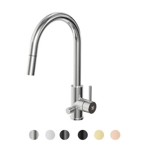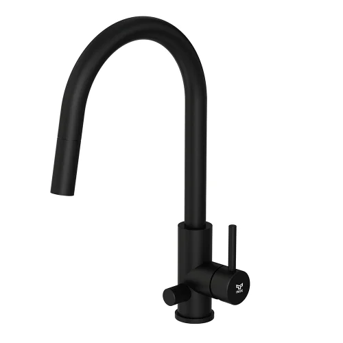 INOX by Tammiholma Q1 keittiöhana C-putkella, APK-liitännällä ja ulosvedettävällä suihkulla