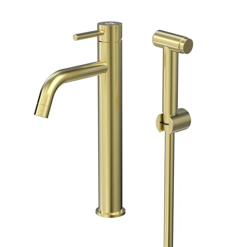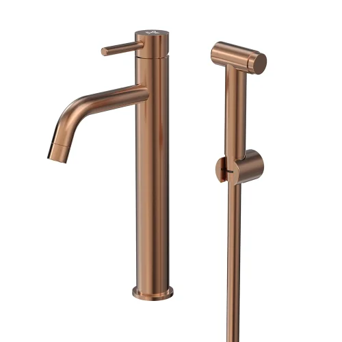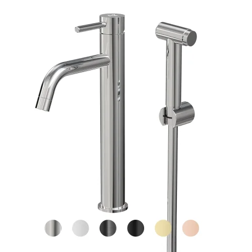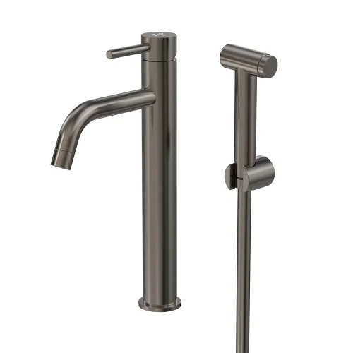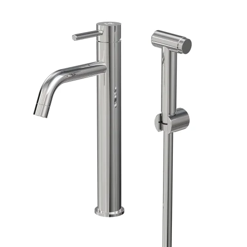 INOX Q1 -korkea bidé-pesuallashana yhdistää malja-altaille sopivan korkean rakenteen ja käytännöllisen bidétoiminnon moderniksi ja tasapainoiseksi kokonaisuudeksi. Selkeä muotokieli ja harkitut mittasuhteet tekevät hanasta näyttävän, mutta ajattoman osan kylpyhuonetta.