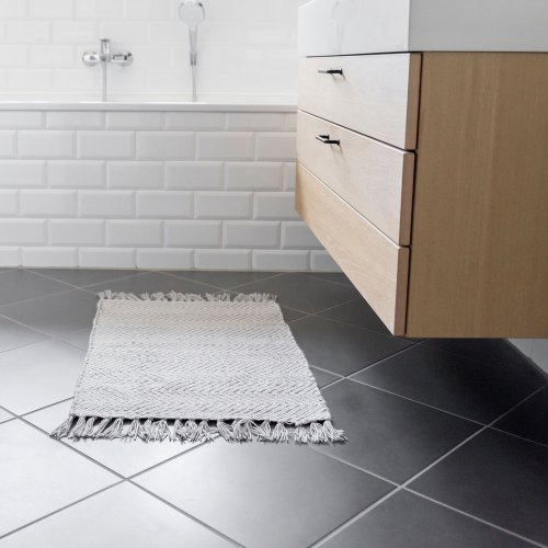 Niin meillekin! Harmaa Gata on ekologinen kylpyhuonematto, joka on valmistettu noin 18 kierrätetystä muovipullosta. Kierrätetyt PET-pullot kerätään, puhdistetaan, murskataan, sulatetaan ja kehrätään lopulta langaksi. Sen lisäksi, että voit vähentää maailman merien muovikuormaa, saat jalkojesi alle pehmeän tuntuman. Matossa on liukumaton pohja, mikä pitää sen turvallisesti paikallaan. Voit vesipestä Gatan 40 °C:ssa. Matto sopii myös tiloihin, joissa on lattialämmitys.