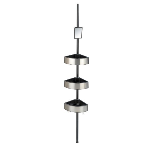 Premium Big Blackissä yhdistyy monta hienoa asiaa. Siinä on kolme hyllyä, kaksi koukkua esimerkiksi pesusieniä varten sekä peili. Hyllyjen pohjassa on reikä, josta ylimääräinen vesi pääsee valumaan alas. Teleskooppisen varren avulla voit säätää korkeutta halusi mukaan. Suihkukulmahylly on valmistettu ruostumattomasta teräksestä, muovista sekä alumiinista.