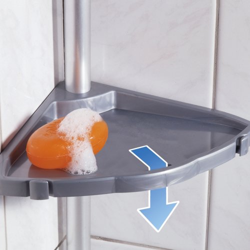 Easy suihkukulmahyllyssä on neljä avonaista hyllyä, joihin saat kylpyhuonetavarasi nätisti esille. Hyllyjen etureunassa on reiät, joista ylimääräinen vesi valuu pois. Kolmen tavallisen hyllyn joukossa on yksi erikoishylly, minkä pohja on tehty ritilämäiseksi. Tämä hylly onkin oivallinen paikka säilyttää esim. palasaippuaa. Samassa hyllyssä on myös kaksi koukkua, joissa voit roikuttaa esimerkiksi pesusieniä. Teleskooppisen varren avulla voit säätää korkeutta halusi mukaan. Suihkukulmahyllyn runko on valmistettu alumiinista ja hyllyt muovista.