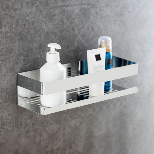 Lisää säilytystilaa märkätiloihin tyylikkään GENOVA suihkuhyllyn avulla. Kiinnityksessä ei tarvita työkaluja eikä poraamista.