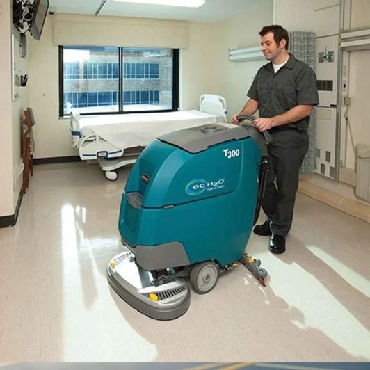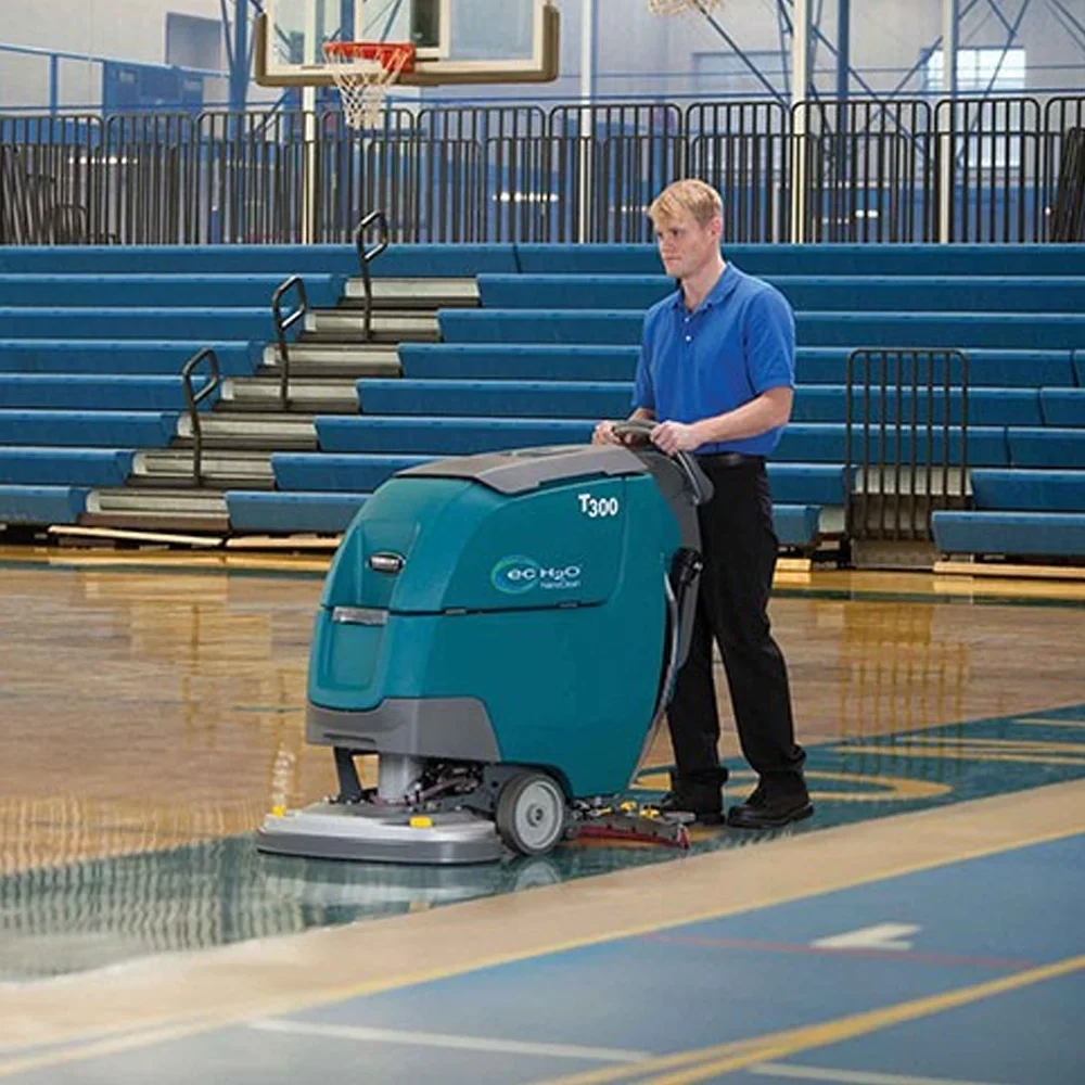 Tennant T300 yhdistelmäkone lautasharjoilla sopii mm. marketteihin, kouluihin, sairaaloihin, teollisuuteen ja korjaamoihin joissa pestävää lattiaa n. 400-2200 m2.
