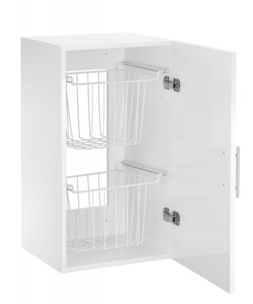 Sisusta PYYKKI-40 pyykkikaappisi valkoisilla lankakoreilla. Kaappiin mahtuu kaksi koria. Voit myös yhdistää lasihyllyjen kanssa, jolloin kaappiin tulee yksi kori ja kaksi hyllyä.