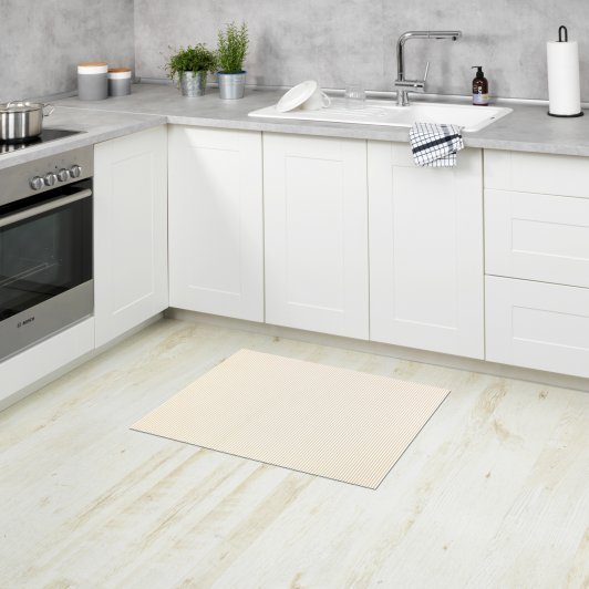 Matto on täysin vedenkestävä, hygieeninen ja likaa hylkivä. Voit sijoittaa beigen maton huolettomasti kotisi kuiviin tai märkiin tiloihin, myös lattialämmitteisille lattioille. Pehmeä ja liukumaton matto tuntuu sekä kivalta jalkojesi alla, että tuo myös turvallisuutta märkiin tiloihin. Jos haluat tehdä matosta hieman pienemmän, voit leikata sitä tavallisilla keittiösaksilla. Puhdistus hoituu varovaisella konepesulla 40° C:ssa.