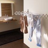 Itävaltalaisen Juwelin valmistamat kuivaustelineet ovat laadukkaita ja kestäviä. Malli- ja kokovaihtoehtoja on useita ja kaikkia yhdistää käytön helppous ja runsas kuivaustila. RuckZuck -kuivaustelineitä on neljää leveyttä: 60, 80, 100 ja 120 cm. Haitarimallinen teline on helppo avata ja se menee pieneen tilaan silloin kun sitä ei tarvita. Saksiosa on eloksoitua alumiinia ja kuivaustangot muovitettua terästä.