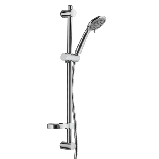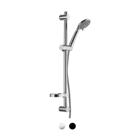 - Säädettävä yläkannakkeen korkeus - Käsisuihku ABS-muovia - Mitat ∅ 25 x P 710 mm - 3-suihkuinen ABS-käsisuihku - Saippuateline ABS-muovia - Joustava letku 1500 mm - Valittavissa 2 eri väriä: Kromi: WLS1004-CR560E (EAN 8019921071435) Mattamusta: WLS1004-NO560E (EAN 8019921071442)