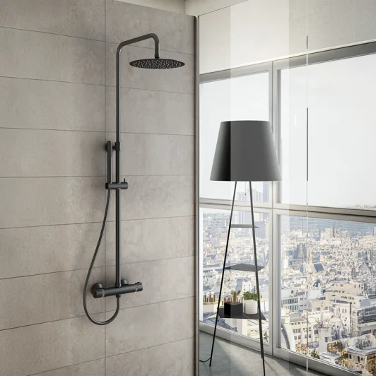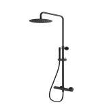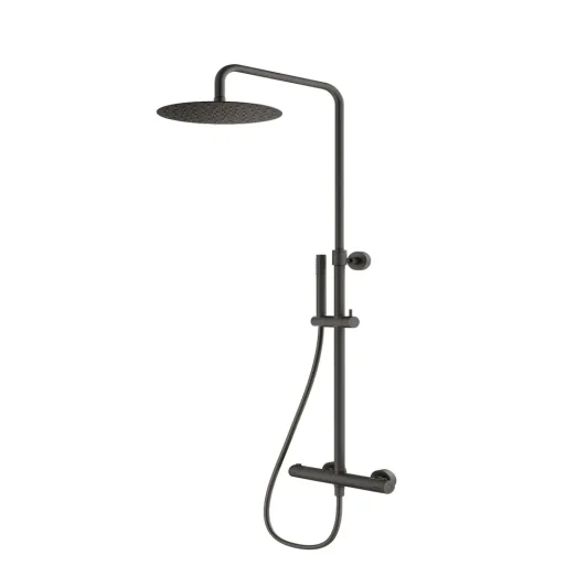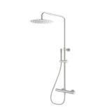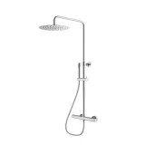 Suurikokoinen Ø250 mm yläsuihku on ruostumatonta terästä ja varustettu kalkinpoistonupilla, joka helpottaa puhdistusta. Suihkuvarsi on kääntyvä ja käsisuihkun pidike liukuva – suihkuasennon säätö käy vaivattomasti. Minimalistinen käsisuihku on valmistettu ABS-muovista ja varustettu 150 cm suihkuletkulla.