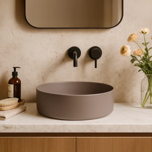 Tuo saniteettitilaasi modernia ilmettä ohutreunaisella Lagoa-altaalla.
