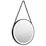 Halifax on näyttävä, nahkahihnalla ripustettava pyöreä, mustakehyksinen valopeili.