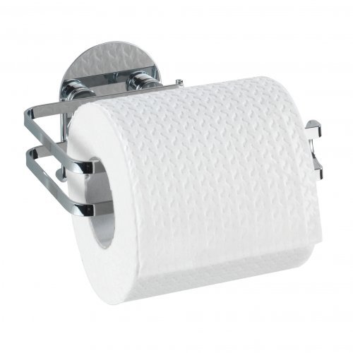 Tyylikäs musta wc-paperiteline TurboLoc -tarrakiinnityksellä.