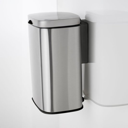 Nelikulmainen roska-astia mahtuu pyöreää roska-astiaa paremmin esim. ahtaisiin wc-pöntön ja seinän välisiin rakoihin. Toisaalta seinään asennettava SARE roska-astia vapauttaa lattiatilan kokonaan muuhun käyttöön. Voit asentaa SARE roska-astian kätevällä TurboLoc-kiinnityksellä helposti seinään juuri sille korkeudelle kuin itse haluat. Roska-astian kansi sulkeutuu pehmeästi soft close-mekanismin ansiosta. Tilavuudeltaan roska-astia on 5 litraa ja se on valmistettu ruostumattomasta teräksestä.