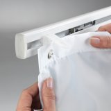 Wenkon litteä Era suihkuverhotanko pingoitetaan kahden seinän väliin, jolloin seiniin ei tarvitse tehdä jälkiä ja asentaminen on helppoa ja nopeaa. Tangon säätöväli on 125-210 cm ja ripustimet sisältyvät toimitukseen. Suihkuverhotanko on valmistettu alumiinista.