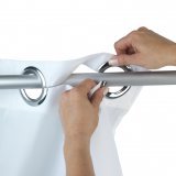 Vettähylkivässä suihkuverhossa on erittäin näppärät integroidut ripustusrenkaat, jotka voidaan napsauttamalla avata ja sulkea. Verhot pysyvät ryhdikkäinä helmassa olevan kumipainon avulla, jolloin ne eivät myöskään helposti liimaudu märkään ihoosi. Verhot on helppo pitää puhtaana, sillä voit pestä ne pesukoneessa 30 °C:ssa.