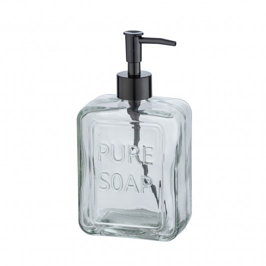 Pure soap on aidosta lasista valmistettu saippua-annostelija, jonka kyljessä lukee "PURE SOAP" kohokuvioiduin kirjaimin. Pumppuosa on musta. Makuasiat ovat makuasioita, mutta tästä ei paljoa saippua-annostelija voi tyylikkäämmäksi muuttua.